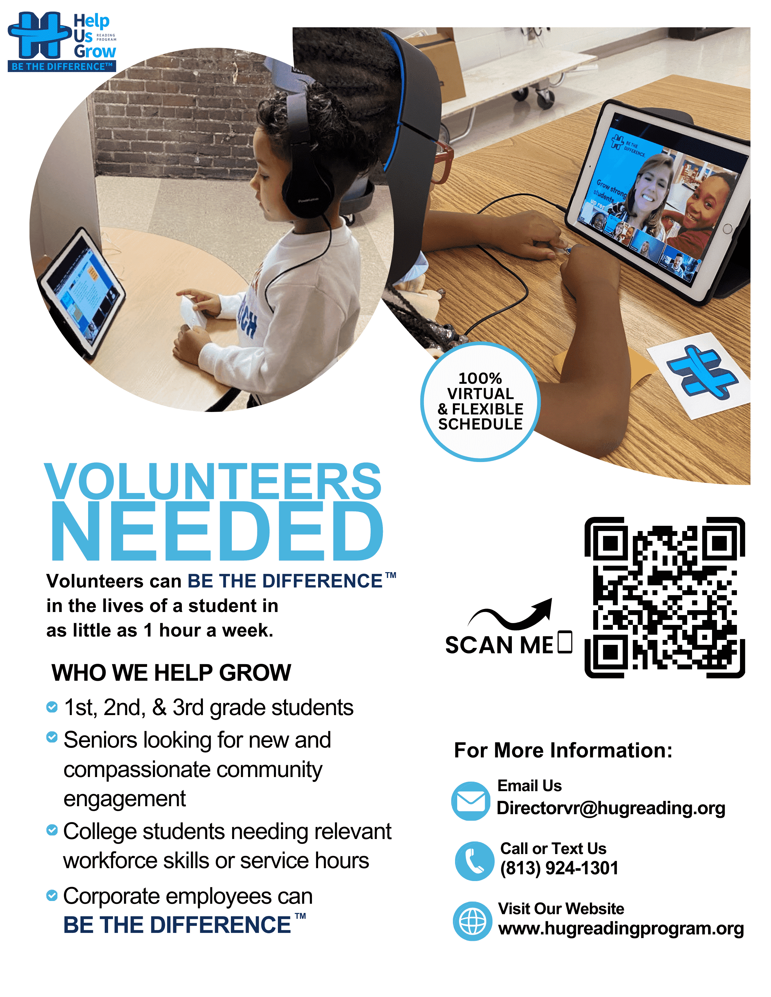 The Help Us Grow Foundation, Inc. expresses gratitude to the volunteers—unsung heroes of literacy, embodying BE THE DIFFERENCE™. | |
